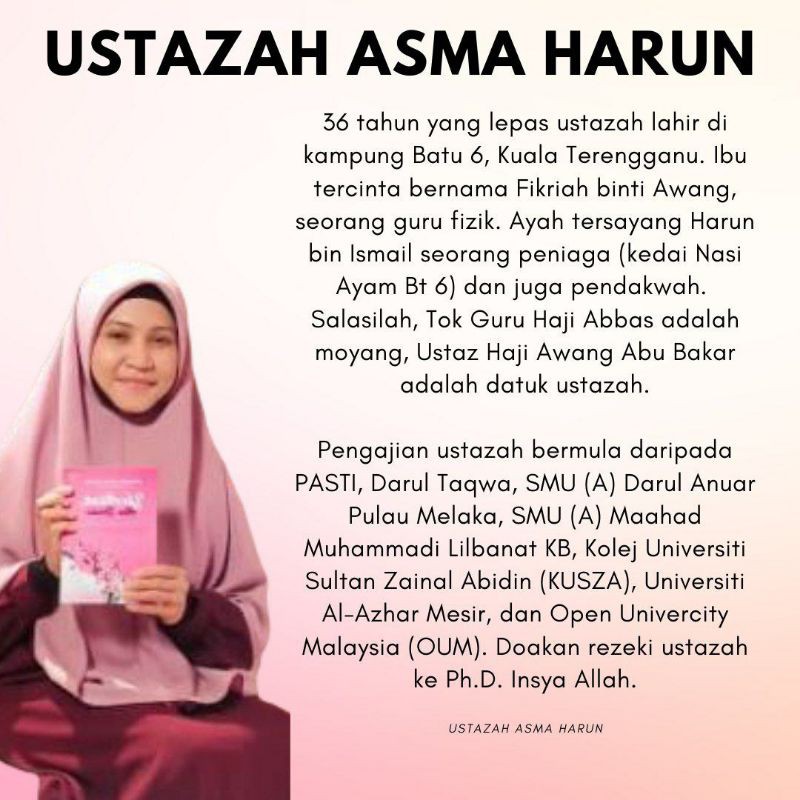 Sekeluarga menuju syurga & wanita paling. Asma' binti harun pendidikan : Kisah perkenalan ustazah asma harun dan suaminya yang disifatkan sebagai posting bersemut di laman sosial facebooknya. Jom berkenalan dengan biodata ustazah norhafizah musa. Menurutnya, suaminya itu yang terlebih dahulu memulakan hantaran pesanan ringkas kepadanya untuk bertanyakan sesuatu berkaitan hukum agama. Maahad muhammadi lil banat tempat tinggal : Asma' binti harun pendidikan : Biodata ustazah asma harun wikipedia. Ustazah berbincang dengan penerbit dan meminta mereka memberi kebenaran supaya ustazah boleh berkongsi bahan ini kepada semua. Pendakwah • penulis • penaung sahabat amal care. By @ustazahasmaharun 4 months ago. Ustazah asma binti harun dilahirkan pada 1984 di kampung batu 6, kuala terengganu, terengganu.ustazah asma ernah bertugas di jakim dan jabatan agama islam. Duhai suami yang mungkin terlupa facebook.com/ustazahasmaharu…